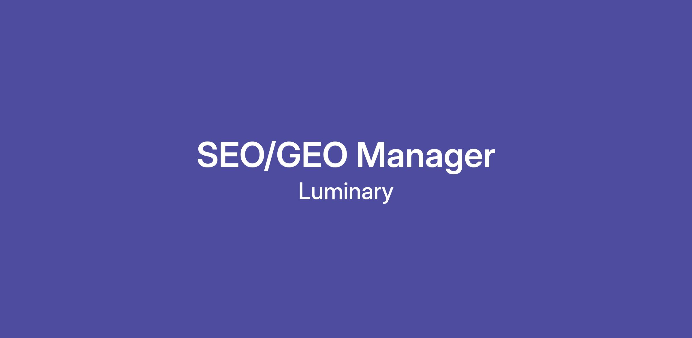 As part of Luminary’s strategy team, you’ll collaborate with specialists in content, strategy, analytics, UX, design, and development to deliver high-quality SEO and GEO outcomes for a diverse range of clients. Supported by the SEO Principal and Producers, you’ll be trusted to manage retainers and project-based SEO and GEO work, combining technical depth with strategic thinking and the ability to communicate insights clearly and persuasively. You’ll play an active role in helping clients understand the evolution of search, translating complex ideas into simple language that builds confidence and drives action. The role focuses on the SEO functions you are used to, as well as emerging GEO activities, such as: